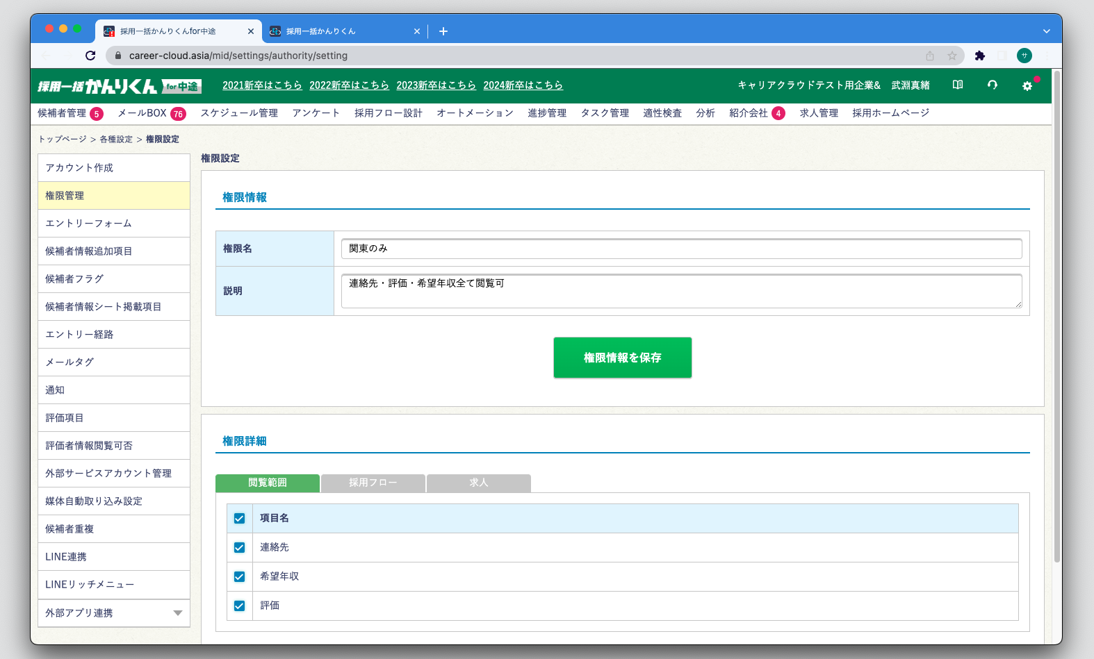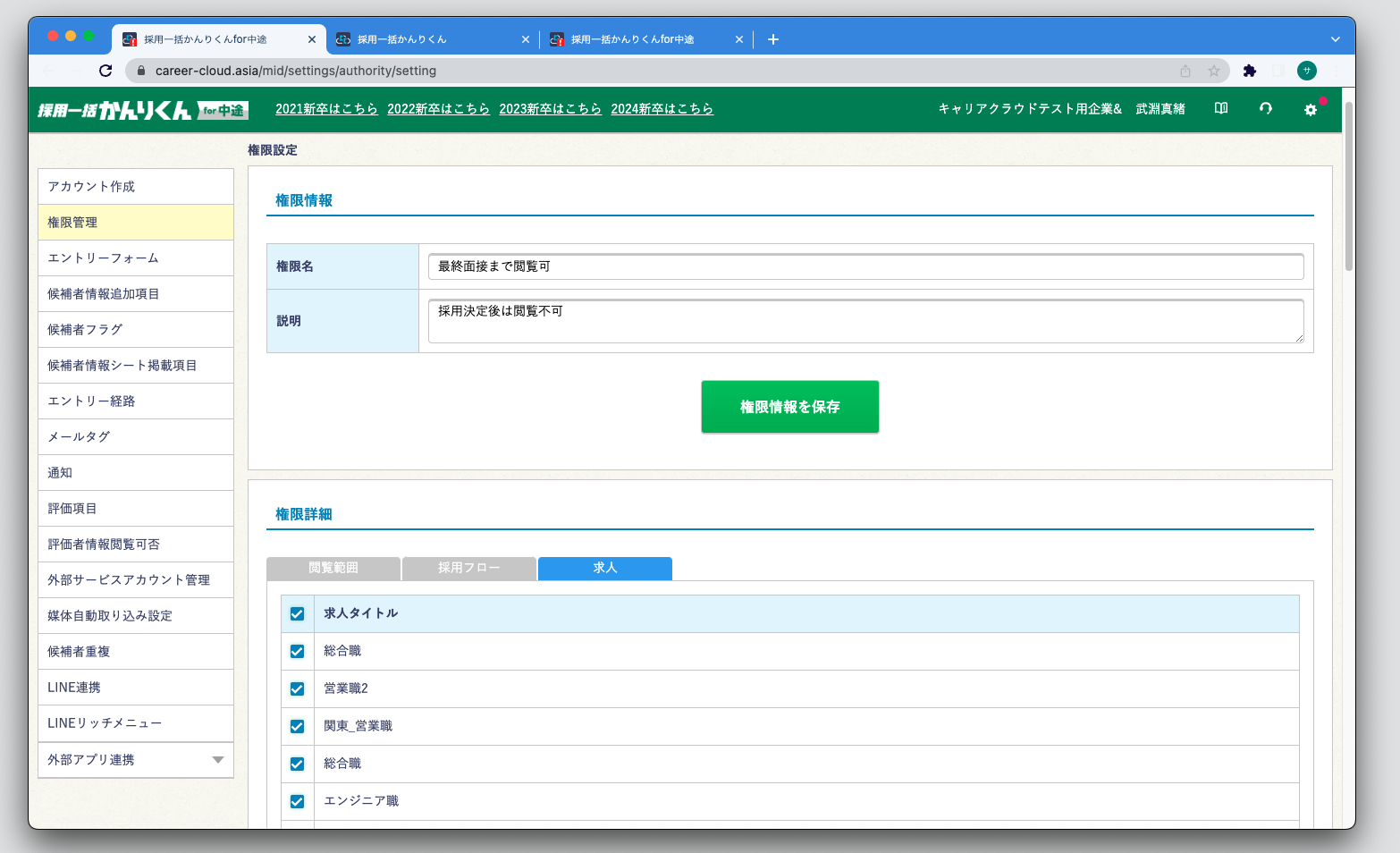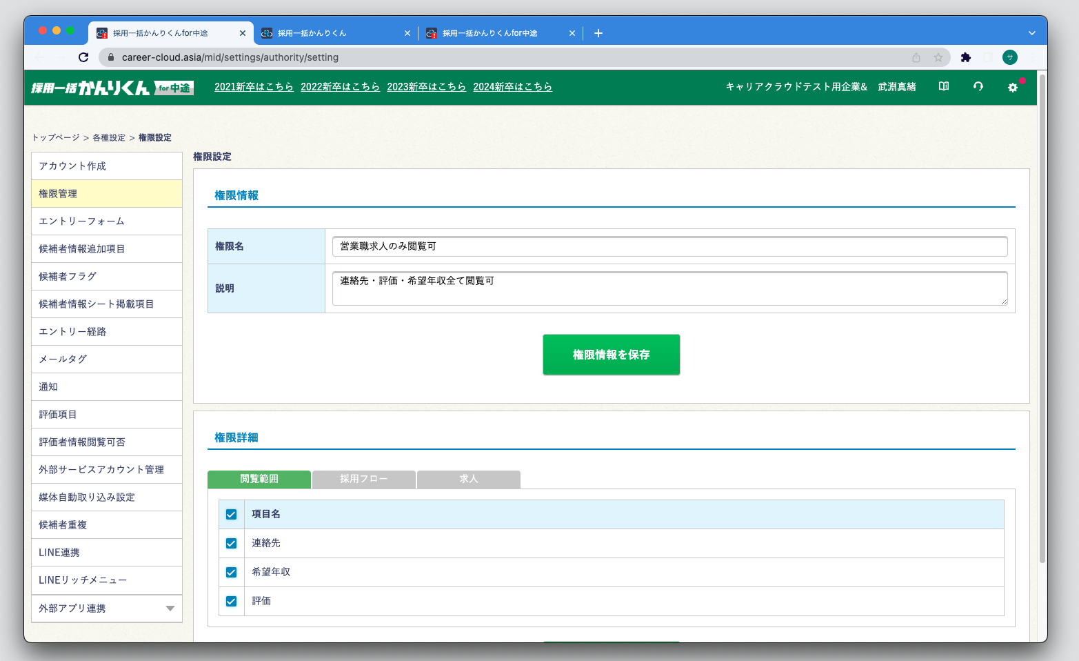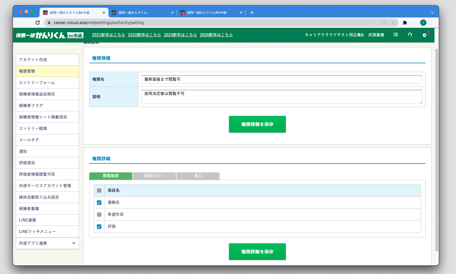 #権限#閲覧範囲#特定の候補者だけ見せたい#連絡先は見せたくない
