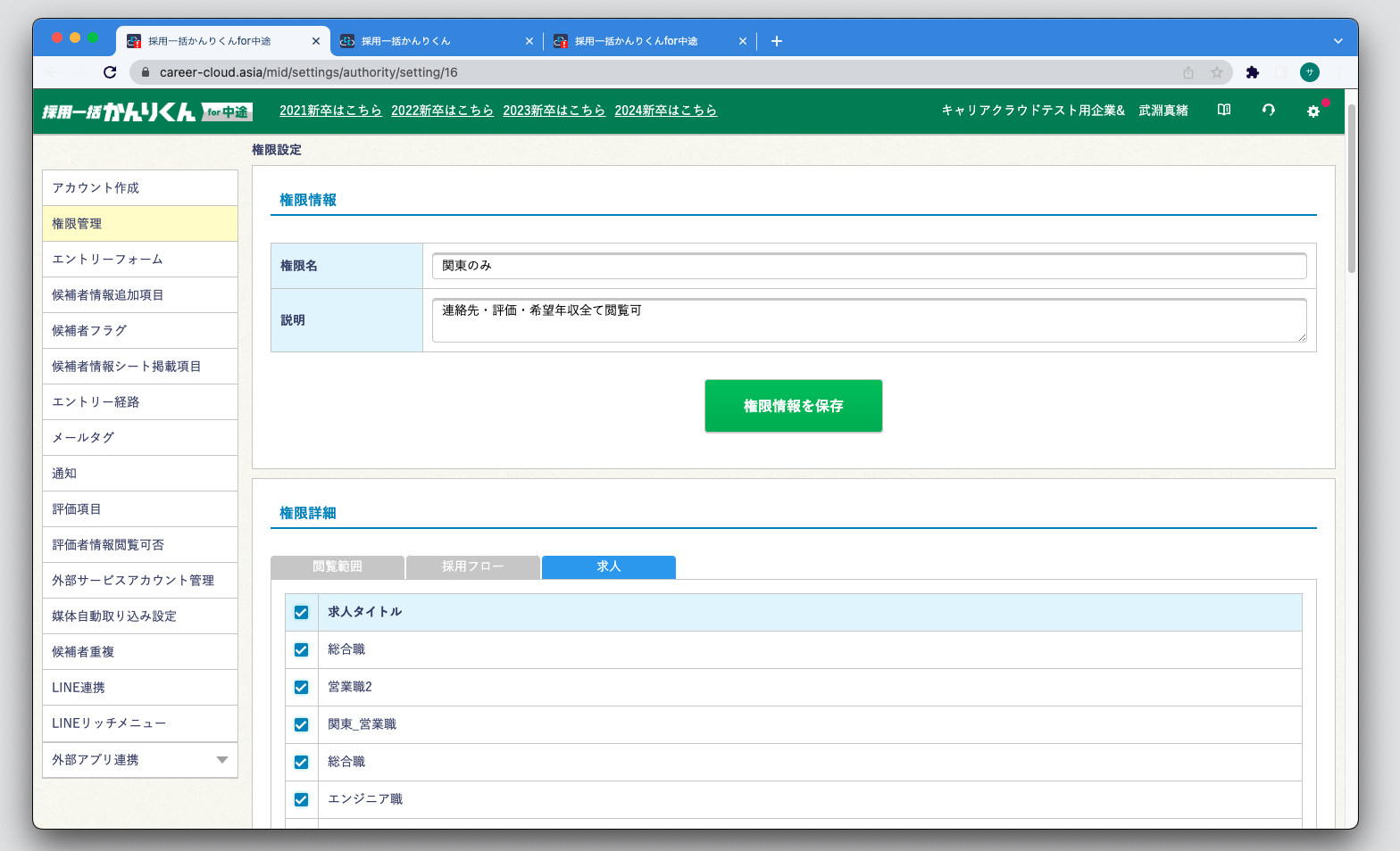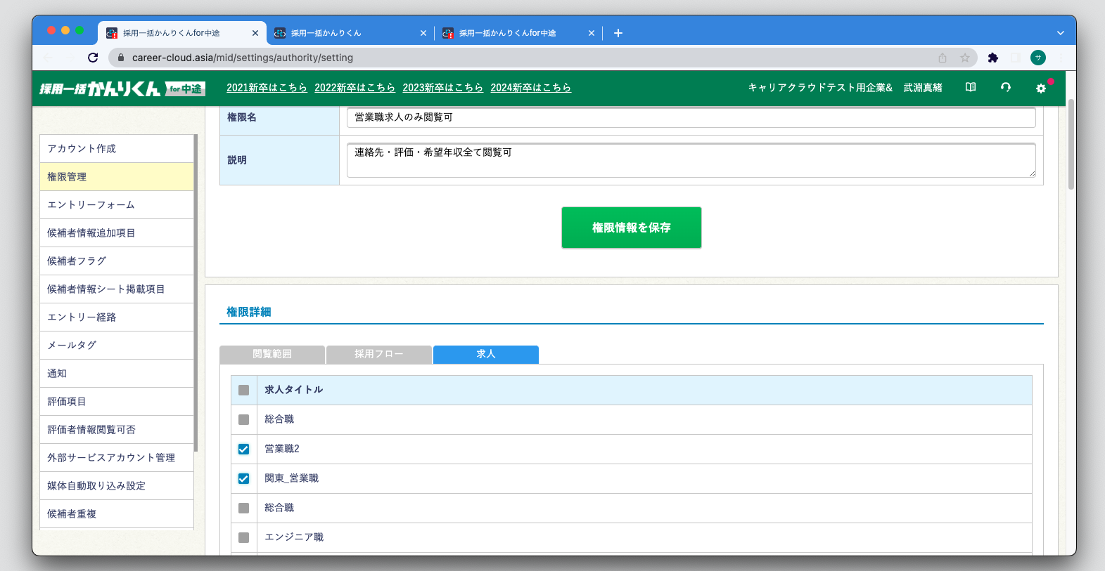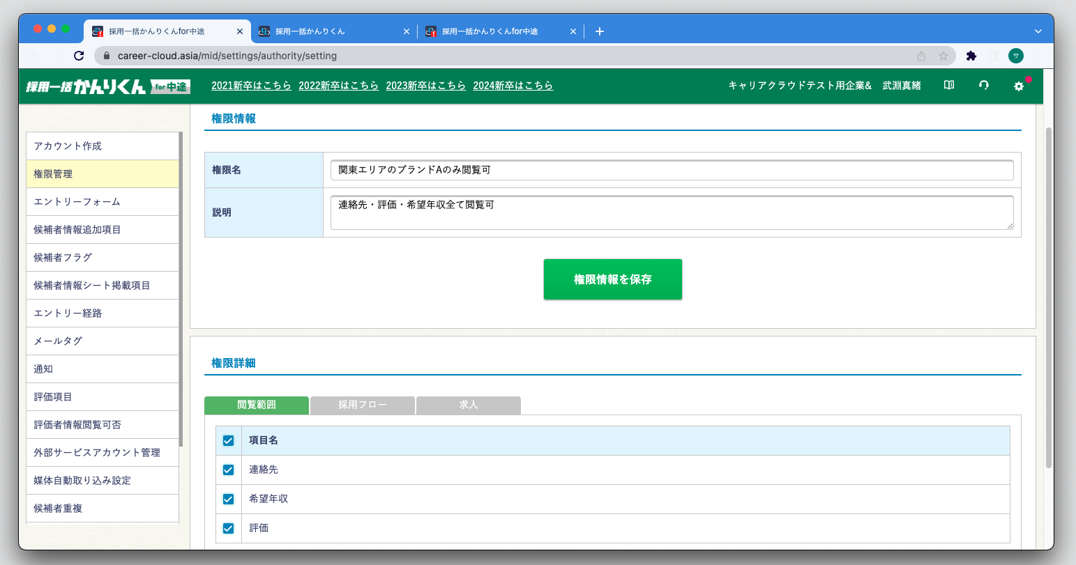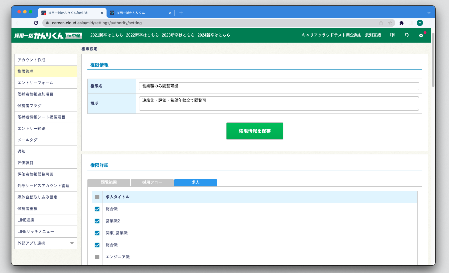 #権限#閲覧範囲#特定の候補者だけ見せたい#連絡先は見せたくない