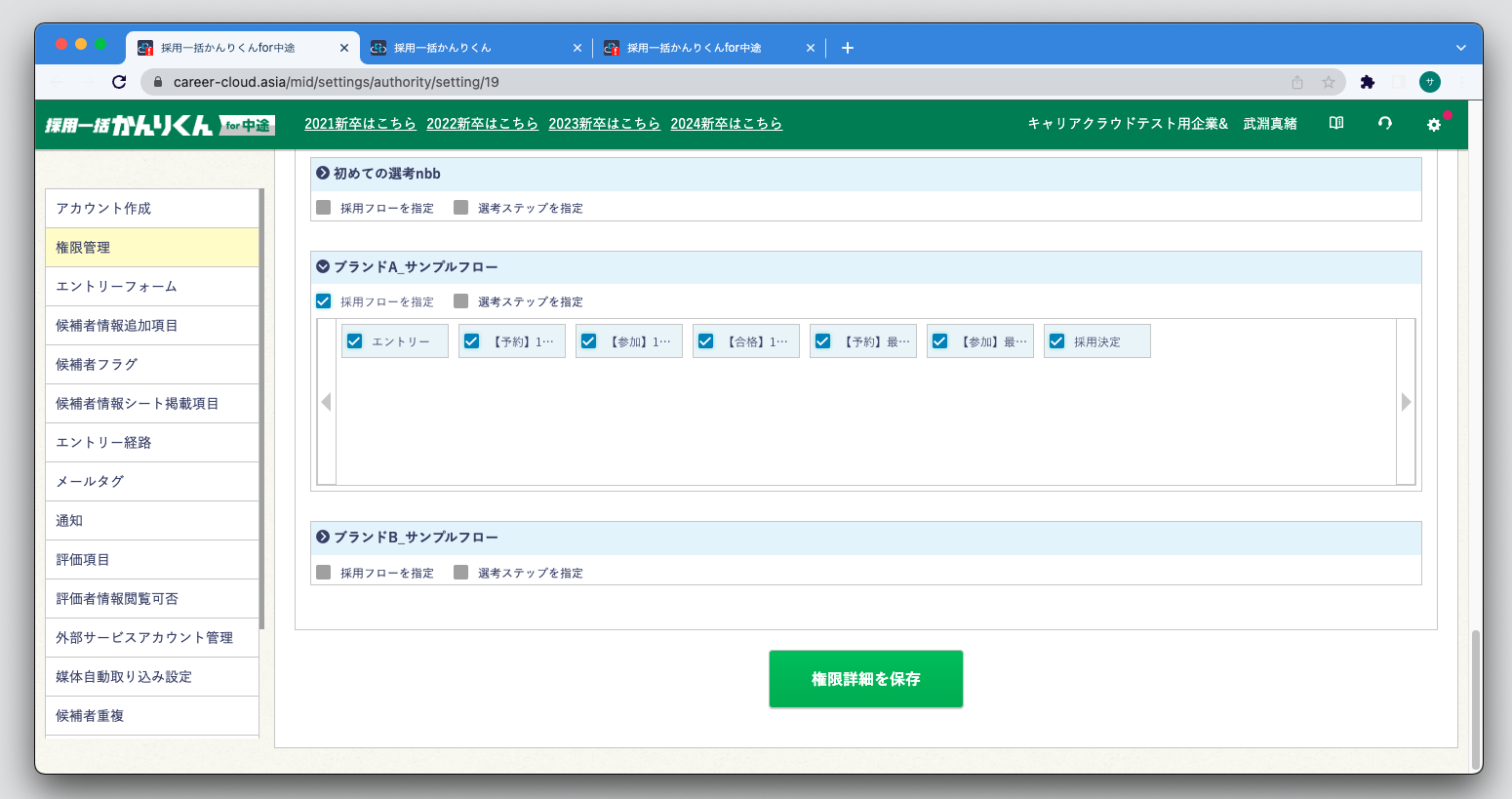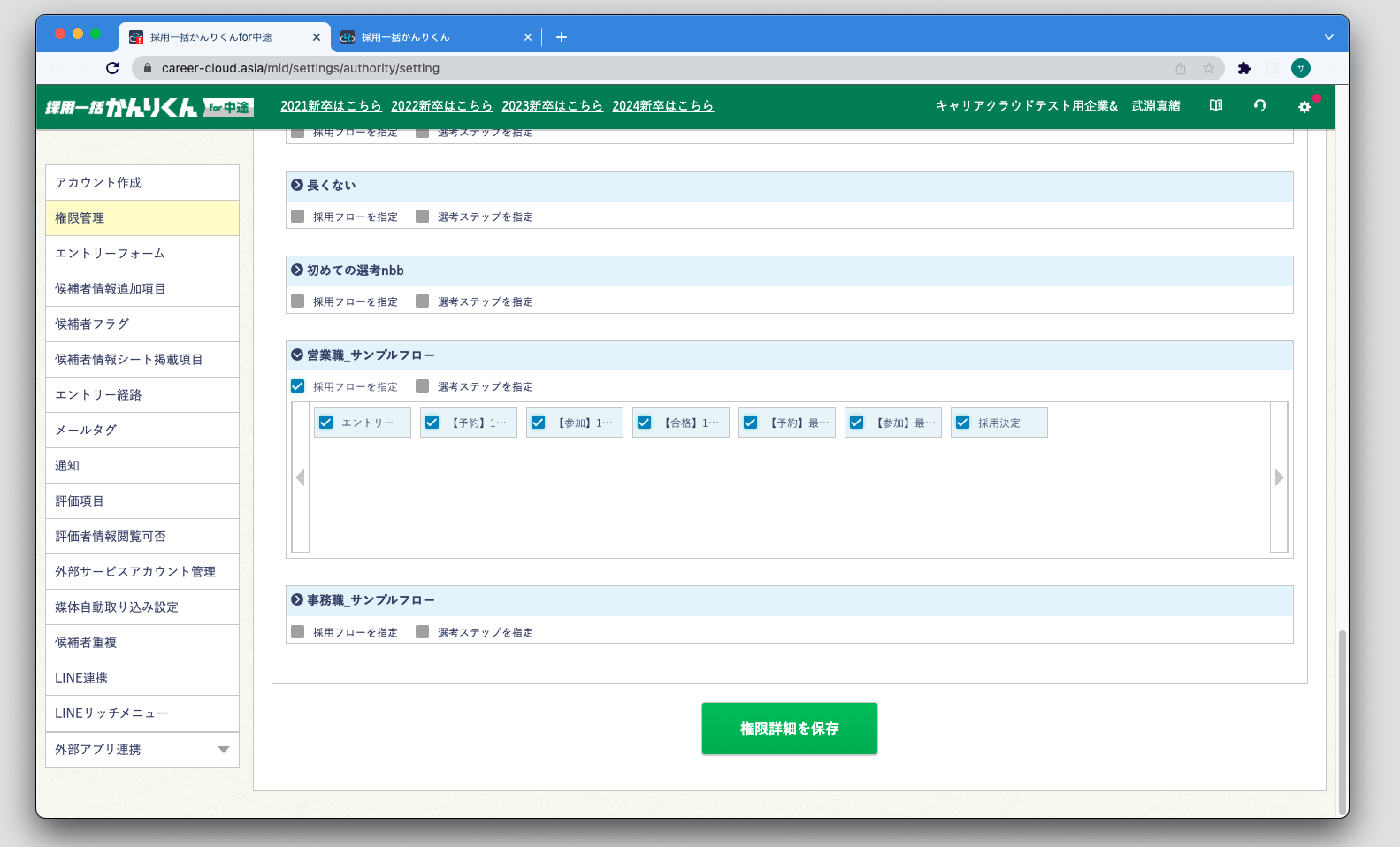 1.[各種設定]>[権限管理]>[権限を追加]にて