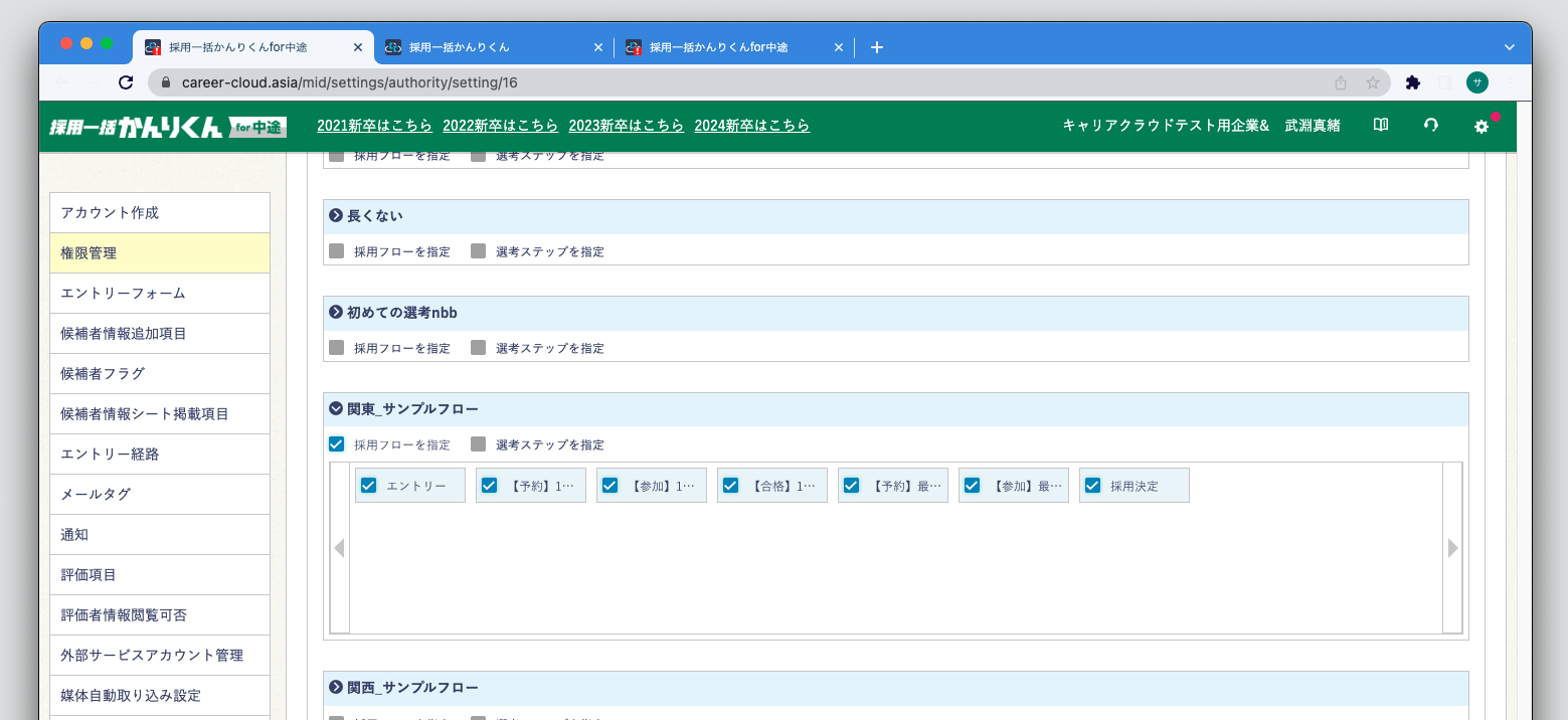 1.職種ごとに担当者が異なるかつ職種ごとに採用フローを分けている